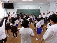 運動会の練習は、ダンスを覚えることを中心に、低(1,2年)中(3,4年)高(5,6年)学年で教室や音楽室などを使って練習しています。来週には、ダンス以外の練習も始まるのかな。暑い日が続いてなかなか運動場に出られないのがもどかしいですが、来週からきっと涼しくなってくれるでしょう。練習頑張ろう! |
