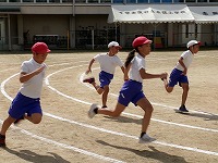 昨日も今日も、くもりで気温がそれほど上がらず、運動会の練習をしやすいです。どの学年も、運動場でげんきに練習をしています。低学年は、玉入れの練習をしていました。音楽に合わせて踊る姿がとてもかわいかったです。応援団のダンスもかっこよかったです。 |