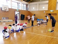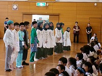 わんぱく班給食と、わんぱく班で楽しく遊ぶわんぱくタイムがありました。1〜6年の教室に分かれて、高学年が中心になって給食の配膳をして食べました。どの教室も机を円形にして仲良く食べていました。昼休みにはわんぱく班でハンカチ落としや何でもバスケット等を楽しみました。 |