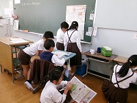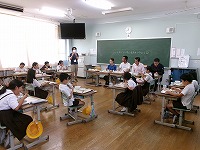4年生の総合的な学習の時間を南河内郡3町村の小学校の先生方が見学に来られました。4年が1学期から取り組んでいる防災を伝える準備をしようという授業で、伝える相手や方法、内容などを考えました。たくさんの先生方に見ていただきました。緊張したかな。よく頑張って「いましたよ。すごいです。 |