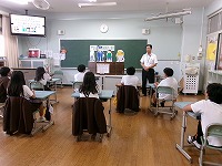 3時間目、5年生に少年サポートセンターと大阪府警からのゲストティーチャーに「非行防止教室」をしていただきました。 万引き、暴力、夜遊び、喫煙といった非行について、どうしてだめなのか、どのようになってしまうのかなどを劇を交えて分かりやすく教えてくださいました。 |