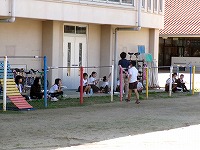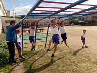 涼しくなって外で遊ぶ子供たちも増えました。2時間目、運動場で1,2年が体育をしていました。うんて、のぼり棒、鉄棒と運動場にある遊具を順番に回って体力づくりをしていました。逆上がりできたかな?休み時間などにどんどん遊んでほしいなと思います。 |