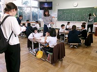 4時間目に4年の授業を参観しました。総合的な学習の時間で、自分たちが調べてまとめている内容で、困っていることがないかを考えて、周りの友達と一緒に考えて、アドバイスをし合っていました。私も新聞紙でてくったスリッパをはかせてもらいました。上手にできていました。 |