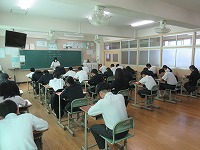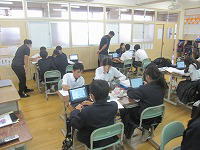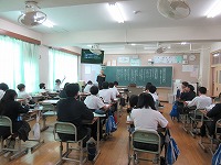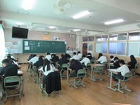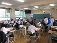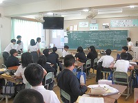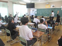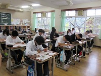 体育大会代休明け、記事もふだんの授業風景に戻りました。一つ大きな変化が。制服登校に戻ったことです。最近の気候から、今年度は本来の設定よりも早く6月初めから(体育大会の日まで)体操服登校も選べるようにしていました。朝夕は涼風も吹き、生徒の服装も変わり、秋を感じます。画像は、1年国語・2年英語・3年理科の授業の様子でした。 | ![]() ![]() ![]() |