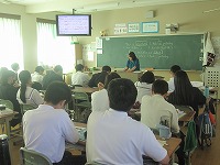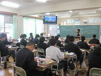 水曜日はもう1週、道徳の様子を紹介します。1年では、バイオリン職人の葛藤や行動から、気高くより良く生きる喜びを見いだすこと。2年では、樹齢七千年の縄文杉の存在から、自然の美しさや偉大さに触れて心を豊かにすること。3年では、女子相撲選手の生き方から、希望と勇気で失敗や困難を乗り越えること。それぞれの価値と向き合っていました。 | ![]() ![]() ![]() |