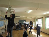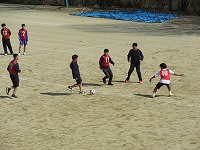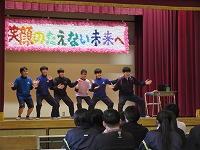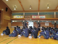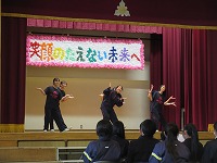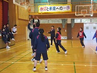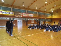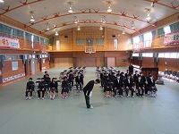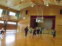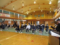 | 風はまだ冷たいものの、今日の陽射しは春らしさを感じました。3年生が元気に体育の授業を楽しんでいました。男子体育では、卒業記念で(!?)学級担任も加わっていました。明日は「3年生を送る会」があります。いろいろと準備をしてきた分、いいひと時になればなと思います。昨日に続き、今日も1・2年生が体育館で頑張って練習していました。 | ![]() ![]() |