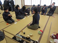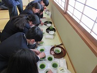 | 2年生は昨日、くすのきホールの和室を借りて「茶道体験」をしました。美術の中で、伝統や文化のよさや美しさを感じ取る学習があり、和菓子を取り上げることがあるのですが、見るだけでなくお茶も点てて味わう機会にしていました。作法を確かめつつ、相手意識を大事にしながら振る舞ったり声をかけ合ったりしていた2年生でした。 | ![]() ![]() |