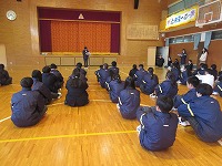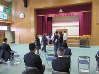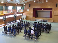| 3月に入りました。3年生が、卒業式に向けての体育館での練習を今日から始めました。自分たちで席をセッティングして、スムーズにスタ―ト。卒業証書授与の流れや、入退場の確認をしました。初回ながらすぐに大きな流れや動きを把握し、質問タイムも取りながら細かなところも確認して対応していて、さすがだなという感じでした。 | ![]() ![]() |