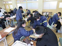 | 2月25日(水)~27日(金)は、学年末テスト(1・2年)があります。 それに向けて「放課後学習会」を行っています。 自分で決めた課題に集中して取り組んでいます。 |