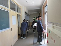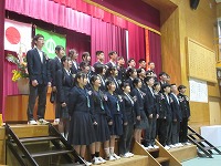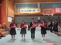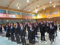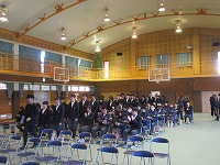 | 明日の卒業式に向け、最終確認の予行を全校でおこないました。卒業生・在校生とも次第通りスムーズに進めていくことができました。一緒に歌う「村唄」は、在校生側が「まだ声が出るぞ」と、3年生退場後、気合を入れて練習していました。明日は、みんなの力でいい式にしましょう。在校生は午後から準備も頑張りました。式場の画像は、明日のお楽しみ・・・ということで載せていません。 | ![]() ![]() ![]() |