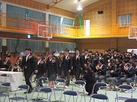 | 3年生にとって、中学校生活最終週になりました。先週金曜日の「3年生を送る会」の余韻に浸り終え、今週金曜日の卒業式に向けて(公立高入試組は水曜日に向けて)、ラストスパートです。午後、卒業式の練習をおこないました。練習回数は限られていますが、もうだいたい仕上がった感じがしました。 | ![]() ![]() |