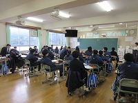 年が改まり、そして3学期を迎えました。本年も、どうぞよろしくお願いいたします。今日は体育館で始業式をした後、学年教室でそれぞれ、取り組んだ課題を提出したり配布物を受け取ったり、発表をしたりしていました。2日目の明日は、早速「実力テスト」です。給食も早速始まります。