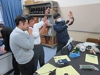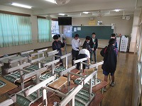 | 2年「理科」では、直列回路と並列回路に流れる電流の法則性を見つけるために、グループごとに協力して実験をしていました。実験結果をもとに話し合い、どの班も自分たちで電流の法則性を見つけていました。 3年「美術」では、自分で作ったオリジナルTシャツを紹介するファッションショーを開催していました。どのグループの発表もいろいろ工夫されていて、クラス全員でとても盛り上がっていました。 |