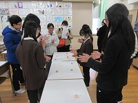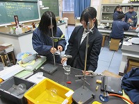 | 3年生は、理科の時間に「卒業探究」に取り組んでいます。自分で取り組んでみたい探究課題を設定し、中学校で学んできた知識をもとにして、どのような実験をすればいいかも自分で考えています。今日の授業も、どのグループも協力しながら、とても意欲的に取り組んでいました。どのような結果が出て、どのような発表になるのか、とても楽しみです。 | ![]() |