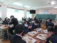 | 2月に入りました。 寒い日が続きます。栄養・休養を大事にして、体調管理に努めてほしいですし、体調を崩している人は持ち直してほしいですね。今日は各学年の給食シーンをアップしてみました。さつまいもご飯、さばの竜田揚げ、きんぴらごぼう、キャベツと厚揚げの味噌汁、温まる和風の献立でした。 | ![]() ![]() |