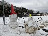 | 日曜の雪や冷え込みで、方転地からの坂道も凍って真っ白になっていました。小吹台へ向かう通学バスが立ち往生の影響を受けてたどり着けなかったこともあり、臨時休校にしました。登校した生徒は給食を早めに食べてから下校しました。授業は自習とし、最後は雪遊びも選択できるようしました。元気に遊ぶ生徒も結構いました。こんな積雪や冷え込みが、明日の大阪府私学入試と重ならなかったのはまだ幸いでした。最後の画像は、受験を応援する意味で作った「合格だるま」の雪だるまだそうです。 | ![]() ![]() ![]() |