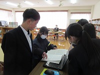 | 大阪教育大学から情報教育コーディネータの先生にお越しいただき、ICT教育や研修を担当している教員と学習会をおこないました。給食風景は、生徒会のランチミーティングです。来週の全校朝会に向けて打合せをしていました。図書室は昼休みの様子です。木曜日は学校司書が本校にいます。昼休みは図書委員がカウンダ―事務を担当しています。 | ![]() ![]() |