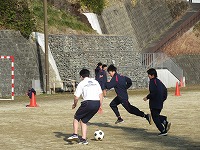 | 今日は、今週はじめのような寒さはなく、あたたかく感じる時間もある1日でした。 2年「体育」は、少人数のチーム編成でサッカーの試合を何度も行い、積極的にシュートを打つことも意識しながら取り組んでいました。 1年「技術・家庭」は、差し金を使って寸法を測ったり、卓上ボール盤を使って加工したりして、木工を楽しんでいました。 |