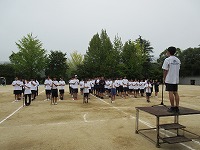 体育大会の直前週になりました。今日は午後から第2回「全体練習」がありました。開・閉会式の流れを中心に確認を進めました。開会式での選手宣誓や閉会式での成績発表や表彰のところも簡略化しつつ通しておこないました。今回もテンポよく進み、後半は集団演技の練習時間も確保できました。今日は暑さをしのぎやすく、ありがたい天候でした。 | ![]() ![]() ![]() ![]() |