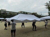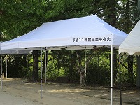 「役割を果たす ~みんなで作る体育大会~」という側面から、<その2>の記事もお届けします。大会出場だけでなく、大会運営でも活躍した村中生。体育大会後の片付けも、協力して行えました。片付け作業は、保護者の方やご家族の卒業生の皆さんもたくさんご協力いただきました。ありがとうございました。ラストの1枚は、平成11年度の卒業生有志・恩師有志の皆様から寄贈いただいたテントです。開会式で紹介させていただきました。ご厚情賜り、感謝申し上げます。 | ![]() ![]() ![]() ![]() ![]() ![]() ![]() |