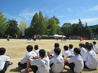 体育大会の予行をおこないました。競技・演技は省略しつつも、入退場含め動きを一通り確認しました。出場者としてだけでなく、さまざまな係の仕事もありますので、配置、進行、準備や片付けについて丁寧に確認をしていきました。プラグラムの合間に、競技みたいに全力疾走して次の役割を担当しに行っている生徒もいて、感心しました。進行の生徒会役員も頼もしく、当日もうまくいきそうです。 | ![]() ![]() ![]() ![]() |