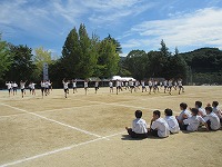秋分の日を挟んで今週2日め。体育大会まではあと3日となりました。今日の記事は、応援練習の様子です。青団・赤団それぞれ、体育館とグラウンドとを前後半入れ替わりで使いました。グラウンドでは両団とも、入退場から本番通り流したうえで、3年生が中心となって良かった点や改善点を伝えながらより良いパフォーマンスをめざしていました。 | ![]() ![]() |