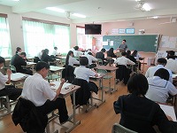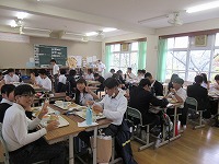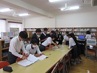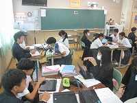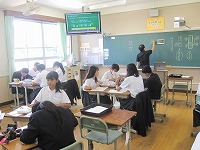 今日の記事も一つずれて10日(金)の様子を紹介しています。いろいろな教科・領域がありますので、中間テストが近づきテスト向け一色・・・という訳でもありません。取材に行ったとき、2年は社会科でしたが、3年は特別活動(学級活動)の時間でした。1年は総合的な学習の時間で、今月末に予定している行事「大阪探索」に向けての取り組みをしていました。 | ![]() ![]() ![]() |