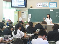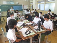 今日は、府教育センターから英語科の指導主事が村の小中学校の授業参観に来られました。1年の授業をご覧いただきました。1年生は、いわゆる三単現のsに関して、plays, likes,goes,studiesと単にsがつくだけでなく、表記が変わったり「ス」という発音になったりする違いを実感しながら、書いたり会話したりしていました。有名人・キャラクターを当てる「誰でしょう?クイズ」も盛り上がりました。 | ![]() ![]() ![]() |