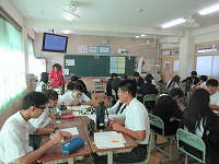 新学期、給食は今日から始まりました。学期はじめは「豆まめごはん」の登場が恒例です。各学年の配膳や喫食の様子を取材してきました。まだかなり残暑が厳しいので、冷やしそうめん汁があるのは、ありがたかったですね。食事や会話が刺激や活力になります。来週も給食を楽しみながら、暑さに負けない元気を貯えましょう! | ![]() ![]() ![]() |