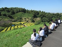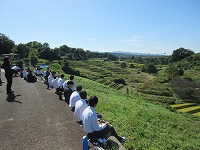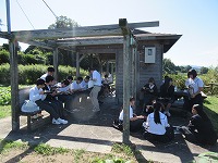 17日(金)、年に一度の「弁当給食」の日でした。弁当を持ってくるのではなく、給食センターがお弁当容器に入れて提供してくれる給食です。天候に恵まれたので、全学年「せっかくだから景色の良い棚田のところで食べたいよね」となりました。校時を調整したり、配膳員の方にご協力いただいたりして、棚田ランチが実現しました。 | ![]() ![]() ![]() |