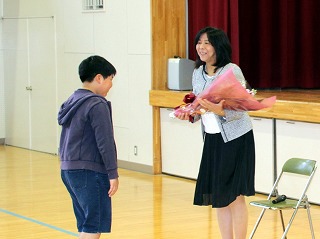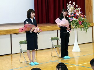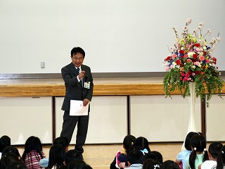 今日は、離任式を行いました。この度の人事異動で本校で10年間お勤めいただいた林 美佐先生は、太子町立山田小学校へ、そして、2年間保健室の先生としてお勤めいただいた井上海南江先生は熊取町立西小学校へそれぞれ転勤いたしました。 少し寒い日となった今日、桜の花も満開で、正門にもパンジーやチューリップがたくさん咲いています。華やかなそんな日でしたが、どことなく寂しい空気も流れていました。 子供たちも、真剣にお二人の話を聞いて名残をおしみながらお別れをしていました。
