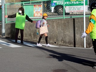本校児童の登下校に合わせて、写真のような黄色のジャンパーを着けてたくさんの「見守り隊」の方々が通学路の安全を見守ってくださっています。 合わせてあいさつの指導もしてくださって、本当にありがたく存じます。 ご協力いただける見守り隊を募集しています。決まった時刻に立つことができなくてもかまいませんので、お散歩の時に黄色のジャンパーを着ていただける方などご協力いただける方がおられましたら、ジャンパーなどのグッズをお渡ししますので学校までお知らせください。