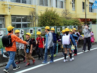 今日の5時間目は、地区別の下校班に分かれて、メンバー確認や話し合い、そして、その班で実際に 集団下校を行いました。 例えば、警察からや教育委員会からの不審者情報、また、サルやイノシシなどの出没情報、大雨や地震などの災害時などは集団下校を行うことがあります。 今日は、6年生が下級生をきちんと並べて、下校する姿があり、頼りになる6年生でした。