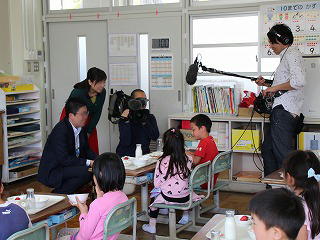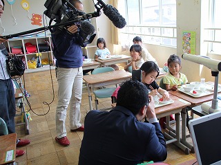 今日の給食には、村で「ちはや姫」というブランドイチゴを育てておられる農家さんの協力で、イチゴが献立に登場しました。 「ちはや姫」の季節は終わってしまったので、今が旬の「紅ほっぺ」というちはや姫の妹いちごです。1年生が食べている様子をNHKの「ニュースほっと関西」のクルーと朝日新聞の記者の方の取材を受けました。大きなカメラや集音マイクを向けられて緊張しながらイチゴを食べていた1年生でした。 この様子は、大きなニュースがない限りは、 明日4月23日(火)夕方6時10分からの「ニュースほっと関西」で放送される予定です。 また、朝日新聞の記事にもなる予定です。 どうぞご覧ください。 給食センターホームページでも 紹介されています こちら