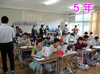 富田林警察署からおまわりさんが1年生教室にお見えになられました。 「いかのおすし」について教えていただきました。 お寿司の話ではありません。 知らない人について イカない 知らない人の車に のらない 連れて行こうとされたら おおごえで助けをよぶ そして すぐにげる 大人に しらせるです。 この標語がはいった連絡ファイルをいただきました。