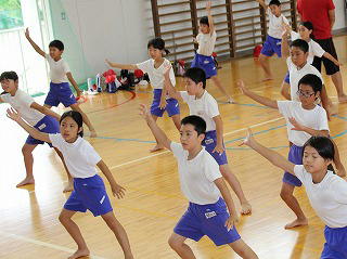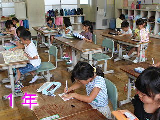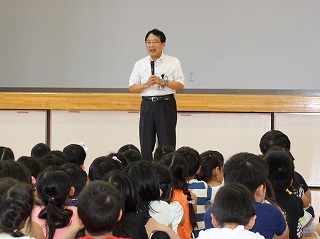 | 夏休みも明日を残すだけとなりました。そんな今日は、子供たちの全校登校日で、保護者や地域の学校施設利用団体の方にもお願いをして運動場の草引きや側溝の泥上げ作業などの「清掃活動」を行いました。
