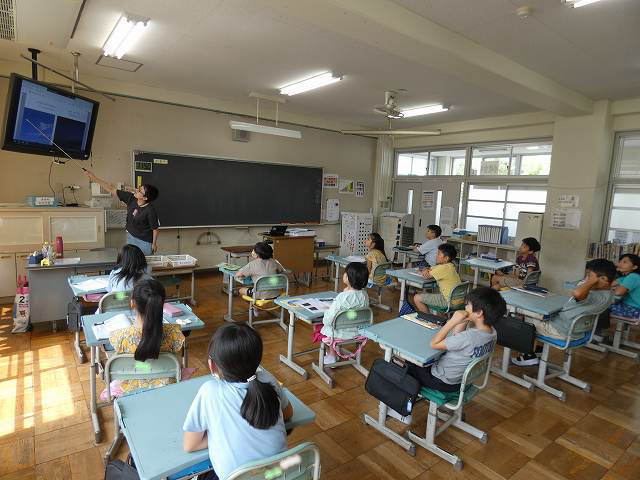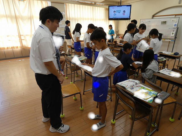 6年生 「夏休みの思い出」を英語で友だちと楽しそうに伝え合っていました。