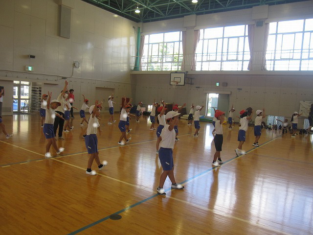 体育委員会では、運動会でラジオ体操の見本になれるように、練習していました。