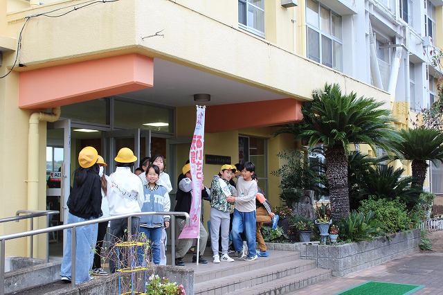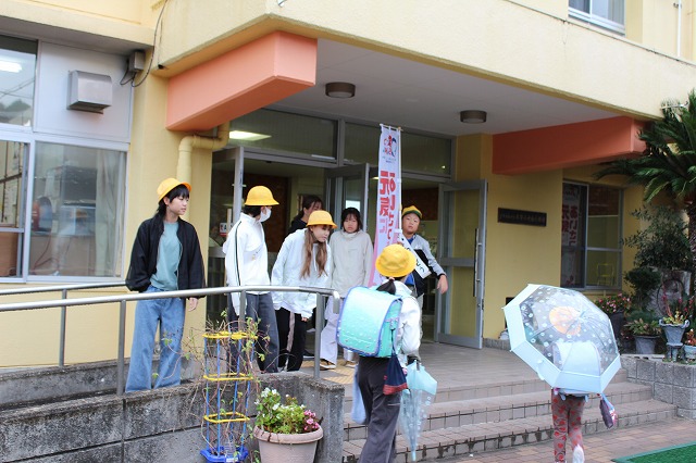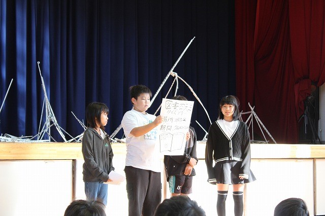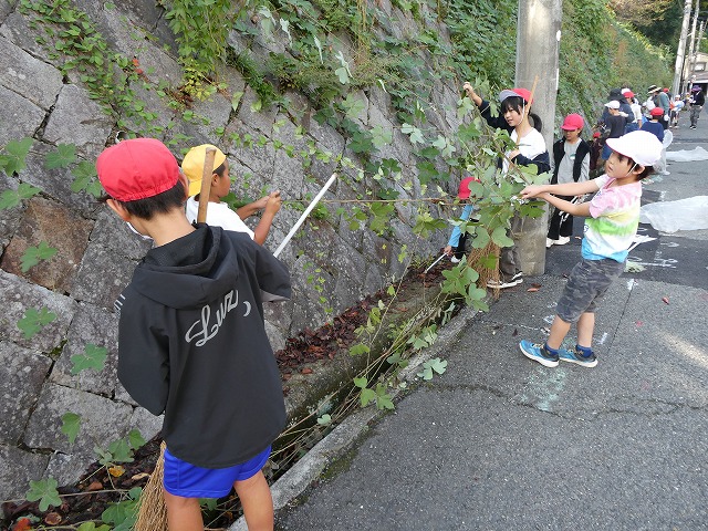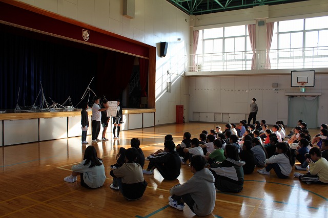 | 10月30日(木) 学校の様子 5年生が、赤阪小5年生と合同で、 「パラリンピック・キャラバン」の体験学習をしました。 ![]() この学習は、毎年度 本村の5年生が受けています。 ![]() ![]() 「車いすバスケット」を体験することを通し、 障がいスポーツや障がい者理解を学びます。 ![]() ![]() 『(できないことを見つけるより)できること を見つけよう』 講師の方が子ども達に話してくれました。 ![]() 貴重な体験になったと思います。 ~~~~~~~~~~~~~~~~ 1・2年生の遠足の様子を お知らせ出来ていませんでしたので、アップします。 ![]() ![]() 今月15日大泉緑地に行きました。 ![]() どんぐりを拾ったり、遊具で遊んだりしました。 ![]() ![]() ![]() ![]() 心配した天気も、後半に回復し、元気に行ってきました。 10月29日(水) 学校の様子 6年生が校外学習に行きました。 ![]() ピース大阪で戦争に関する資料の見学、 大阪城で外国の人にインタビューを実施、 最後に、オリックス劇場でミュージカル鑑賞をしました。 ![]() ![]() ![]() 大阪城では多くの方とインタビューができました。 ![]() ![]() ![]() ![]() ![]() ![]() (劇場は撮影禁止でした) 秋晴れの心地よい気候の中、学習できました。 10月28日(火) 学校の様子 昨日のそうじは、落ち葉拾いでした。 ![]() ![]() 縦割り班毎、グランドや学校周りの側溝の落ち葉を拾いました。 ![]() ~~~~~~~~~~~~~~~~ 今朝の児童朝会は、図書委員会の発表でした。 ![]() 読書の秋にちなんで、クイズを企画しました。 ![]() 村立中学校から3名の生徒が、職業体験で来ました。 ![]() 2日間、教員の仕事を体験します。 10月27日(月) 学校の様子 今日から、長休みの時間を使ったかけ足運動が始まりました。 ![]() 気温が高く、かけ足日和でした。 ![]() ![]() 全校でのかけ足運動は、6回行われます。 ![]() 体育の授業でも走り、マラソン大会に備えます。 10月23日(木) 学校の様子 1・2年生が、育てていたサツマイモを収穫しました。 ![]() みんな夢中になって掘り返していました。 ![]() ![]() 猛暑の夏を乗り越え、これだけ収穫できました。 ![]() 10月22日(水) 学校の様子 毎週水曜日の朝は、児童会があいさつ運動をしています。 ![]() 2学期に一緒にあいさつをしててくれる児童の募集をしました。 ![]() その結果、たくさんの児童が参加してくれました。 ![]() 10月21日(火) 学校の様子 2年生の児童が陶芸を体験しました。 ![]() ![]() 地域の方と学校支援本部(保護者の方など)の皆さんが、 教えてくださりました。 ![]() ![]() 事前に描いた設計図を基に、集中して製作しました。 ![]() ![]() 作った作品は、いきいきサロンの焼き窯で焼いてもらいます。 10月20日(月) 学校の様子 不審者対応避難訓練をしました。 ![]() 富田林警察署員が不審者役になり、教室に入るという かなり本番に近い設定の訓練でした。 ![]() 「素早く静かに避難できていた」と講評をいただきました。 もしもの時も、落ち着いて行動できたらと思います。 ※子ども達には「訓練を行う」と事前に伝え 過度な心配をしない様、配慮をしました。 それでもお家に帰った後にも恐怖が納まらない様でしたら、 安心させると共に、学校にお知らせ頂く様お願い致します。 ~~~~~~~~~~~~~~~~ 急に、秋らしい気候になりました。 ![]() 正門周りの樹木は葉が色づき 花の咲く勢いも衰えた感じがします。 ![]() 子ども達の服装も、長袖や上着が増えました。 ![]() ![]() 季節の変わり目は喘息などの持病が悪化しやすいと聞きます。 体調に気を付けて、登校してほしいです。 しばらく滞っていましたが、今日からまた更新します。 10月17日(金) 学校の様子 今日は、年に一度の「お弁当給食」でした。 ![]() ![]() ![]() ぽかぽか陽気の中、グループで食べる子。 日陰で、クラスまとまって食べる子ども達。 様々な食べ方をしていました。 ![]() 子ども達の喜ぶおかずも沢山入り、 楽しい給食の時間でした。 (献立については「給食センターHP」からご覧ください) 千早赤阪村立学校給食センター 10月14日(火) 学校の様子 今朝は、なかよし班遊びの日でした。 ![]() ![]() ![]() ![]() ![]() 気候も穏やかになり、朝からの活動もしやすくなりました。 ~~~~~~~~~~~~~~~~ 4年生が理科で観察しているヘチマ、2階上まで伸びました。 かつてはこの時期、成長が止まり枯れ始めたのですが、 温暖化の影響なのか、まだまだ元気です。 ![]() 10月9日(木) 学校の様子 5年生の図工の授業に地域の方が来られました。 ![]() 木工(電動糸のこ)について、教えて貰いました。 ![]() ![]() ~~~~~~~~~~~~~~~~ 5年生が育てたバケツ稲は収穫が終わりました。 ![]() 登校中の児童が「クワガタを見つけた」と。 夏と秋、2つの季節が混在しています。 ![]() 10月8日(水) 学校の様子 近つ飛鳥博物館主催のはにわ展に出典する埴輪を作りました。 ![]() 博物館の学芸員から、埴輪が作成された 古墳時代についての説明を聞きました。 ![]() ![]() 学習した知識に加え、 個性あふれる創造的な埴輪が作られました。 ![]() 東部6小学校の児童が作った埴輪が、 近つ飛鳥博物館に展示される予定です。 
