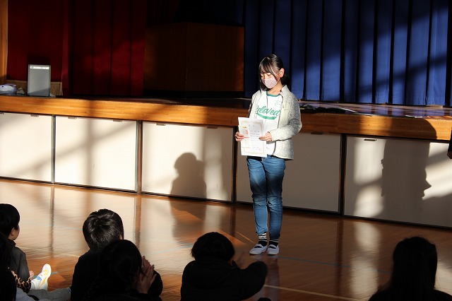 あいさつ励行、靴箱内の上履きの整頓等の話がありました。