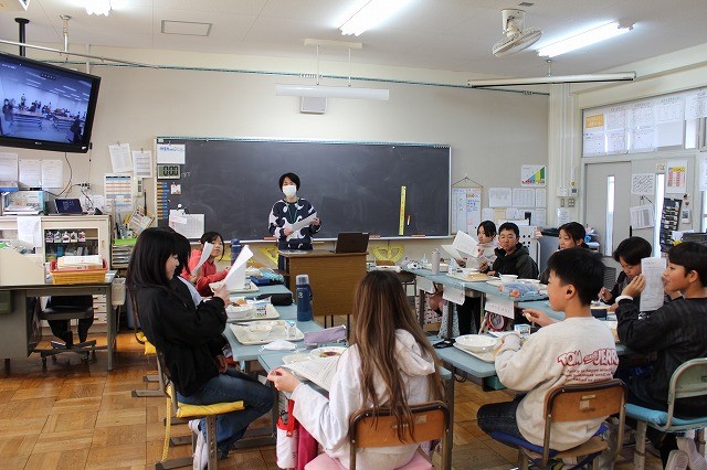 昨日の給食の時間、村給食センター栄養指導教諭の先生が、