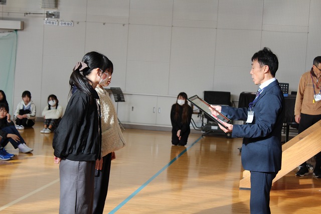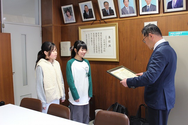 6年生児童へ、近つ飛鳥博物館「児童はにわ展」入賞の表彰を