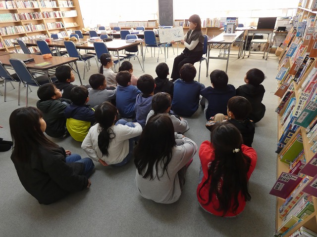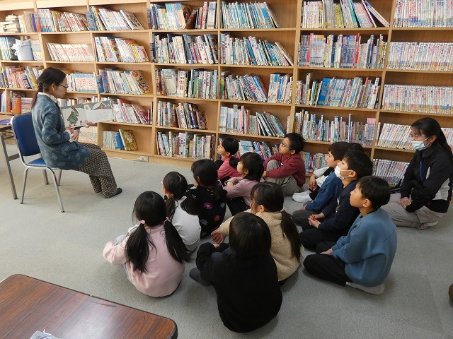 授業時間での図書ボランティアさんの読み聞かせ(3学期)