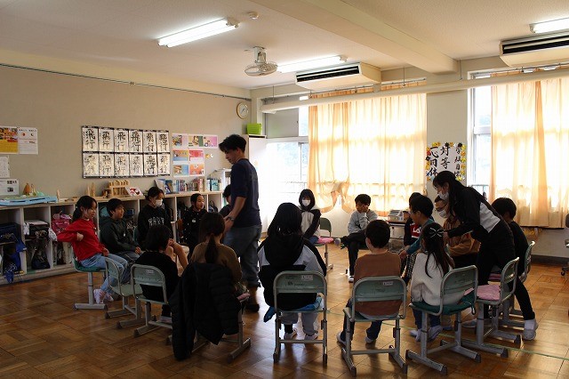 1・5年生が校内を案内したり一緒に活動したりしました。