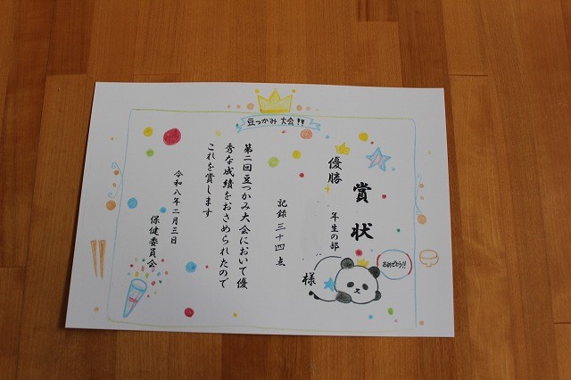 先月 保健委員会が開催した「豆つかみ大会」の