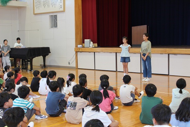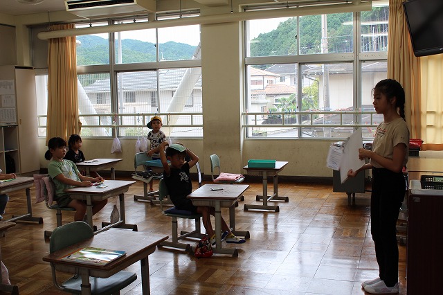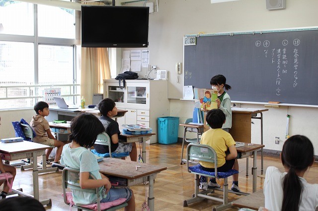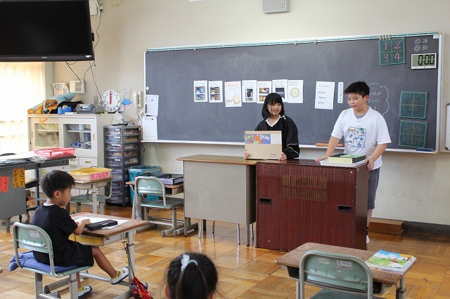 低学年の教室で、図書委員の読み聞かせがありました。