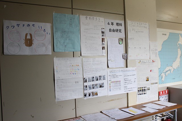 多目的室前に、4年生の自由研究が掲示していました。