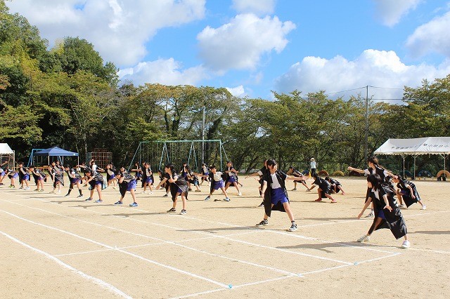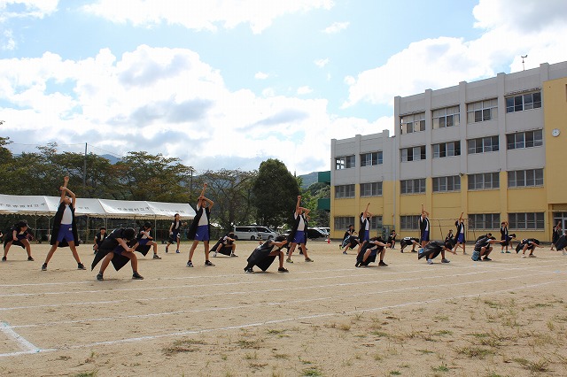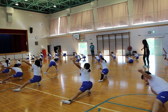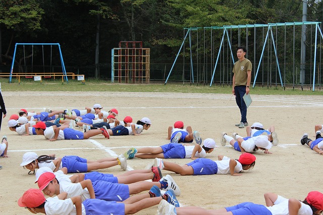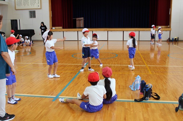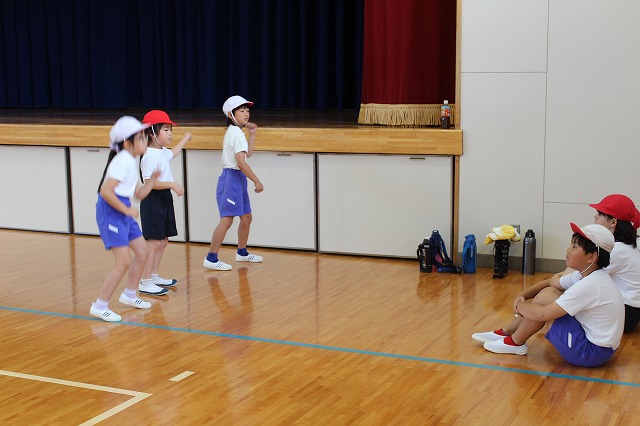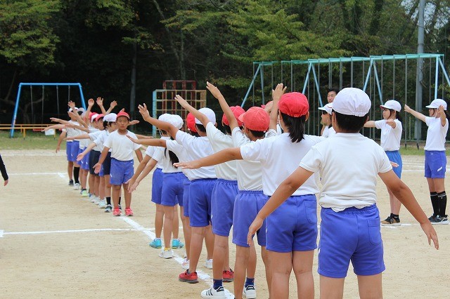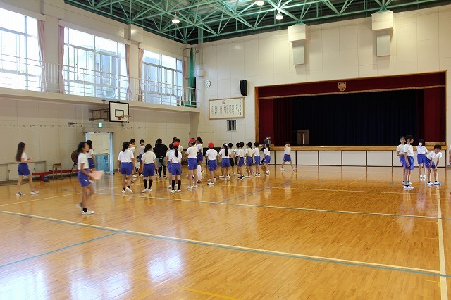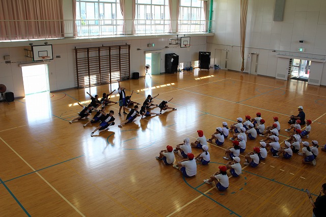 1時間目、高学年は引き続き団体演技の練習に入りました。