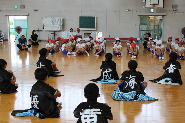 4~6年生は、法被を着用して団体演技を練習しました。