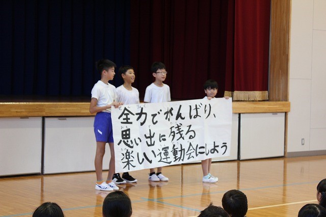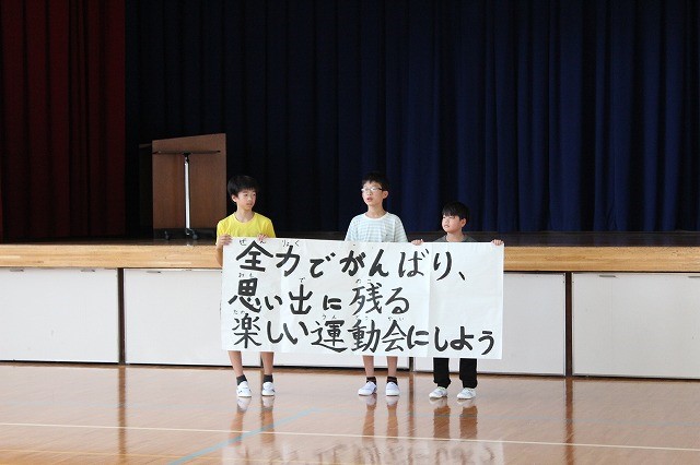 運動会のスローガンの発表でした。